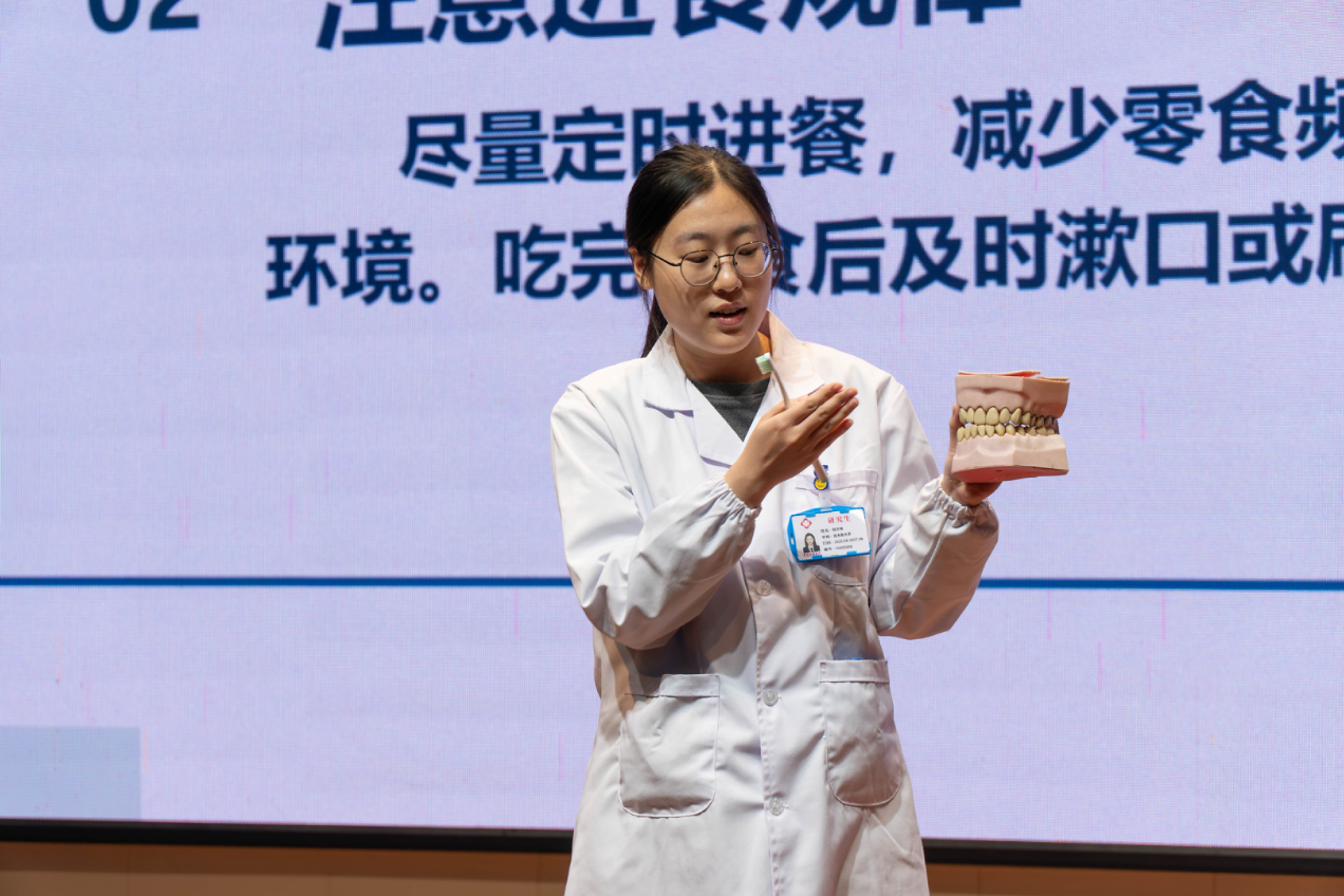 黑龙江省医院香坊院区急诊科负责人高宇飞主任医师以《校园安全与急救技能培训》为题,结合校园突发事件案例,系统讲解了心肺复苏、创伤处理等实用急救技能,帮助师生筑牢校园安全防护线。口腔医学中心副主任李海清主任医师聚焦《大学生活中不可忽视的口腔健康》,针对大学生常见的口腔问题,普及了科学防护知识与就医指导,引导师生树立主动健康意识。专家们的讲解深入浅出,既有专业理论支撑,又有实际应用价值,引起现场师生的热烈反响。