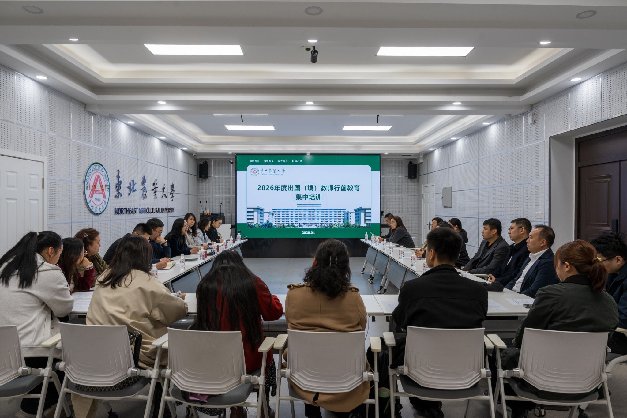 为进一步强化我校出国(境)访学进修教师安全风险意识与综合防范能力,持续深化爱国主义教育,引导广大教师厚植家国情怀、坚守育人初心、勇担兴农使命。4月17日下午,学校组织召开2026年度出国(境)教师访学进修行前教育集中培训暨校欧美同学会“感悟黑土荣光 勇担兴农使命”见学活动。人事处(党委教师工作部)、统战部、国际交流合作处相关负责同志、2026年拟出国(境)访学进修教师及相关学院管理人员参加培训。省欧美同学会秘书长李游、2025年归国教师代表、我校欧美同学会部分代表及省欧美同学会会员代表共同参加见学环节。